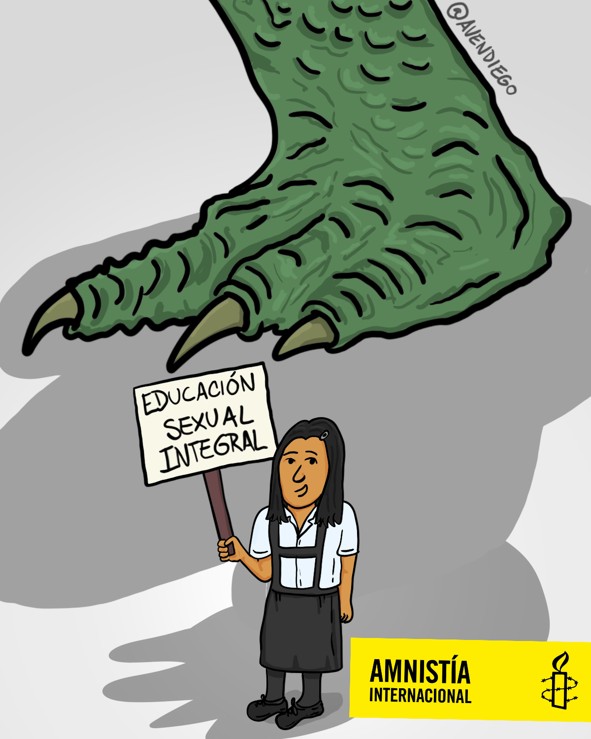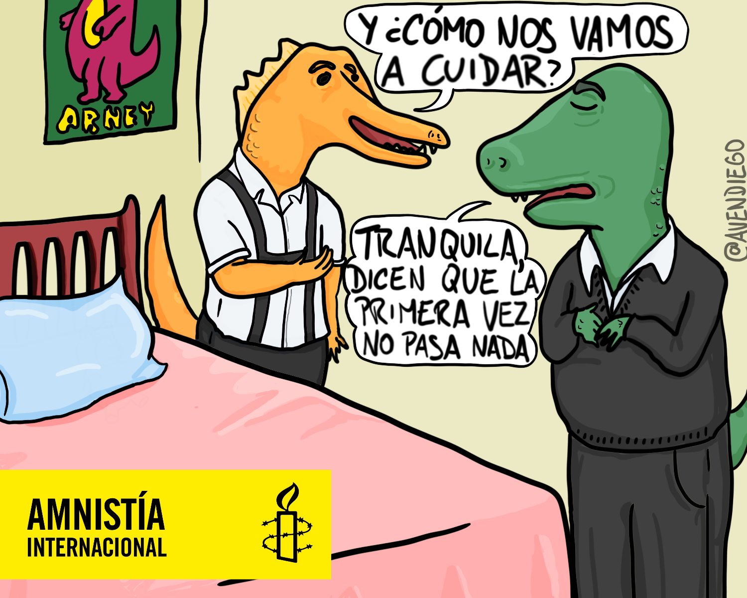 Para este caso, Amnistía Internacional solicitó 5 viñetas abordando distintos aspectos e implicancias de esta ley aprobada por el Congreso.