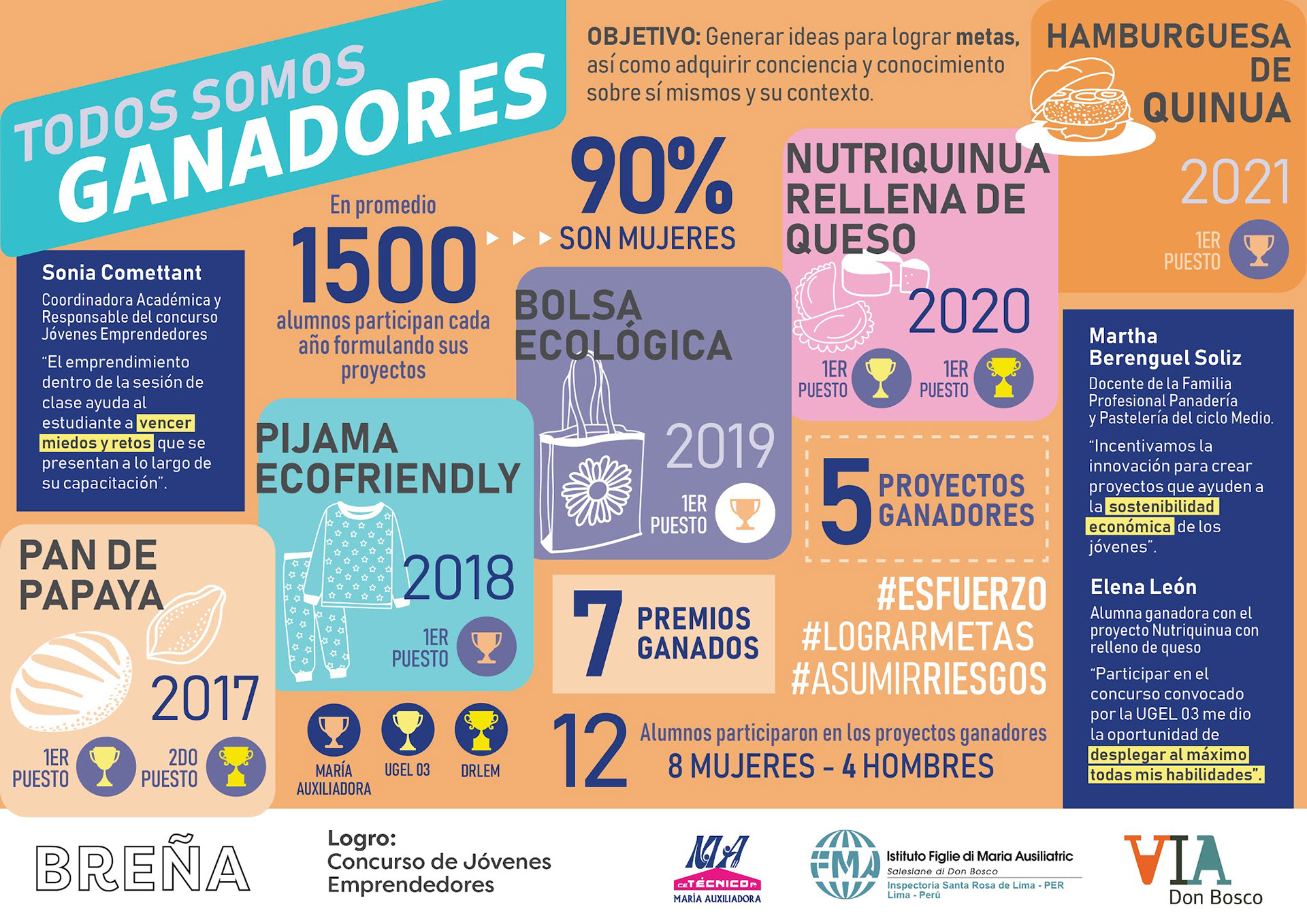 Como parte de este cierre, requería documentar algunos de sus logros en 3 CETPRO y la Oficina de Planificación y Desarrollo a través de 8 textos y un número igual de infografías. Para este proyecto me encargué de la redacción y corrección de los textos. Para las infografías trabajé junto a Angela Vasquez Vivanco, diseñadora que desarrolló la propuesta gráfica, de manera que cada logro y cada institución tenga una personalidad propia, pero que, al verlas en conjunto, se pueda observar una unidad visual.